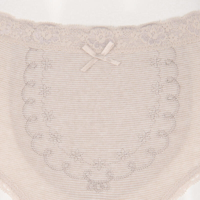 優しいはき心地にこだわった脇に縫い目のないデザイン、ウエストや脚まわりにはさりげなくレースをあしらいました。