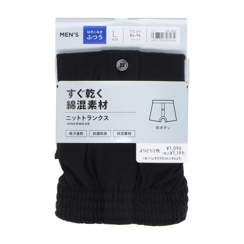 綿とポリエステルを混紡しており、綿の肌ざわりと通気性・ポリエステルの型崩れしにくい長所を活かした素材です。