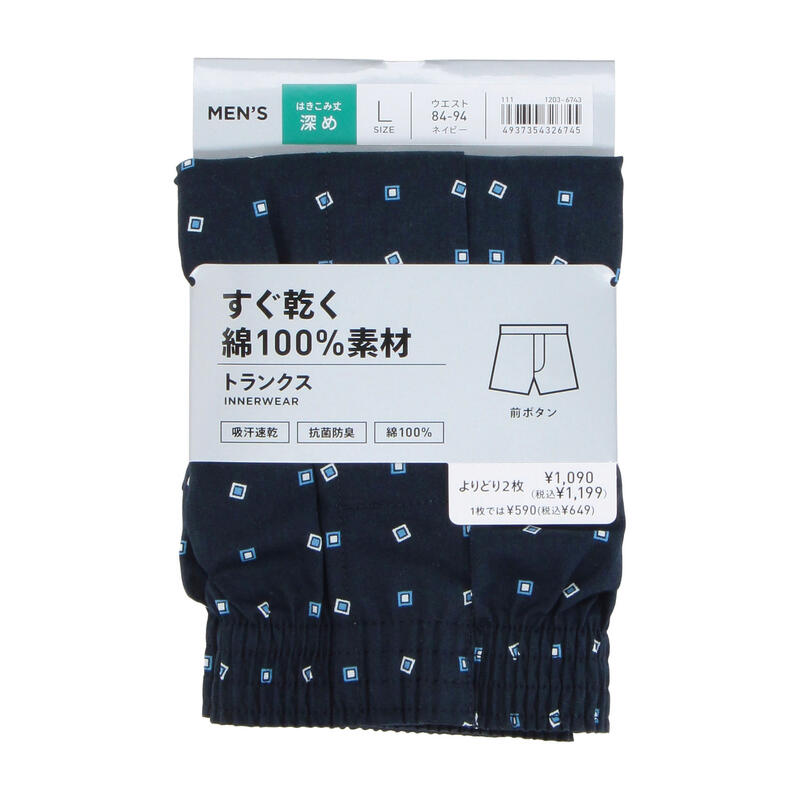 はき込み丈(前身と後身と股上を合わせた長さ)は深め、脇の縫製仕様が少し前身内側に入っており、