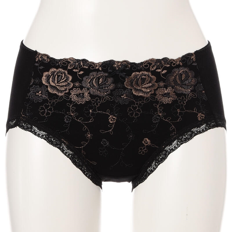 表側は総レースでエレガンスに、後ろ側はおしりをすっぽり包む深めのシルエットではき心地にもこだわりました。