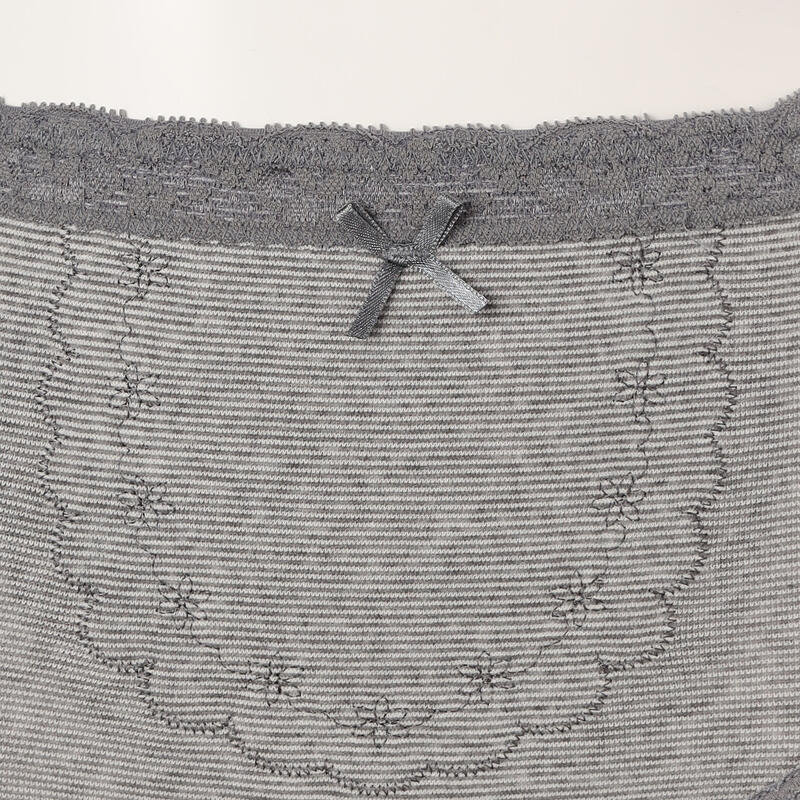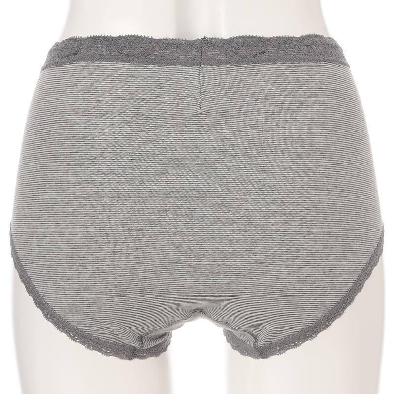 優しいはき心地にこだわった脇に縫い目のないデザイン、ウエストや脚まわりにはさりげなくレースをあしらいました。