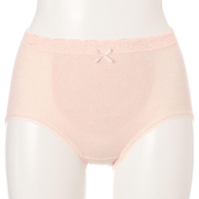 優しいはき心地にこだわった脇に縫い目のないデザイン、ウエストや脚まわりにはさりげなくレースをあしらいました。