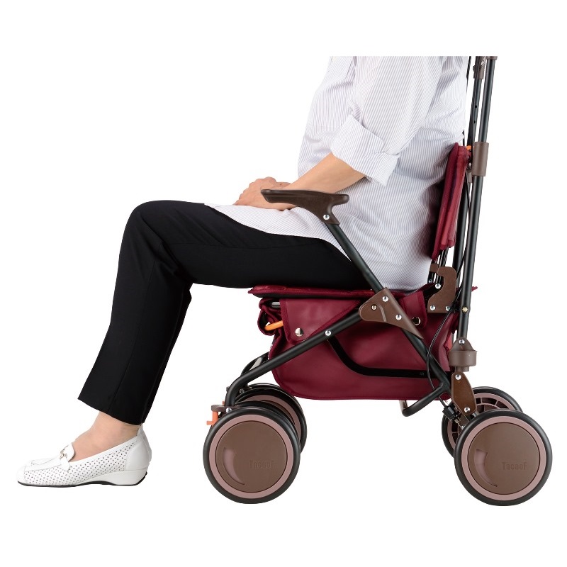 女性目線で考えた、低い座面で座っていて疲れにくいシルバーカー。