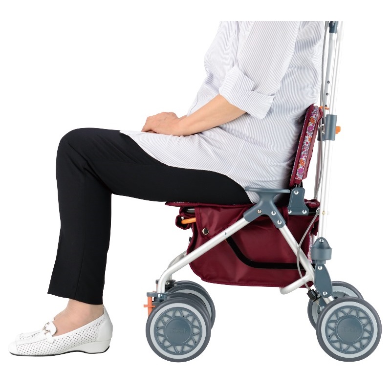 女性目線で考えた、低い座面で座っていて疲れにくいシルバーカー。