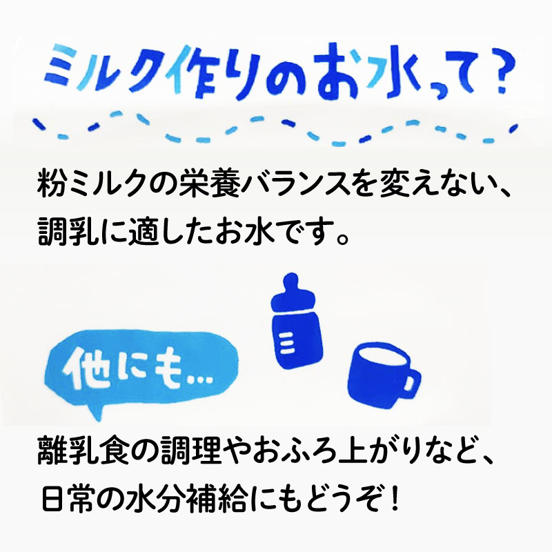 粉ミルクの栄養バランスを変えない調乳に適したお水です。