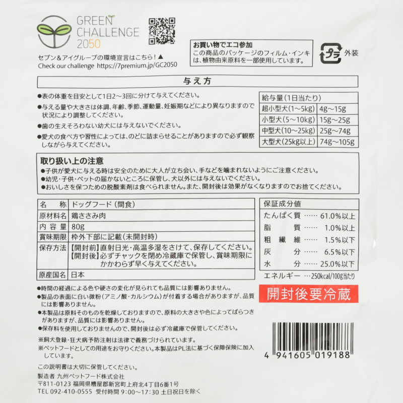 鶏ささみをそのまま細切りにして乾燥させたので本来の味を楽しめます。