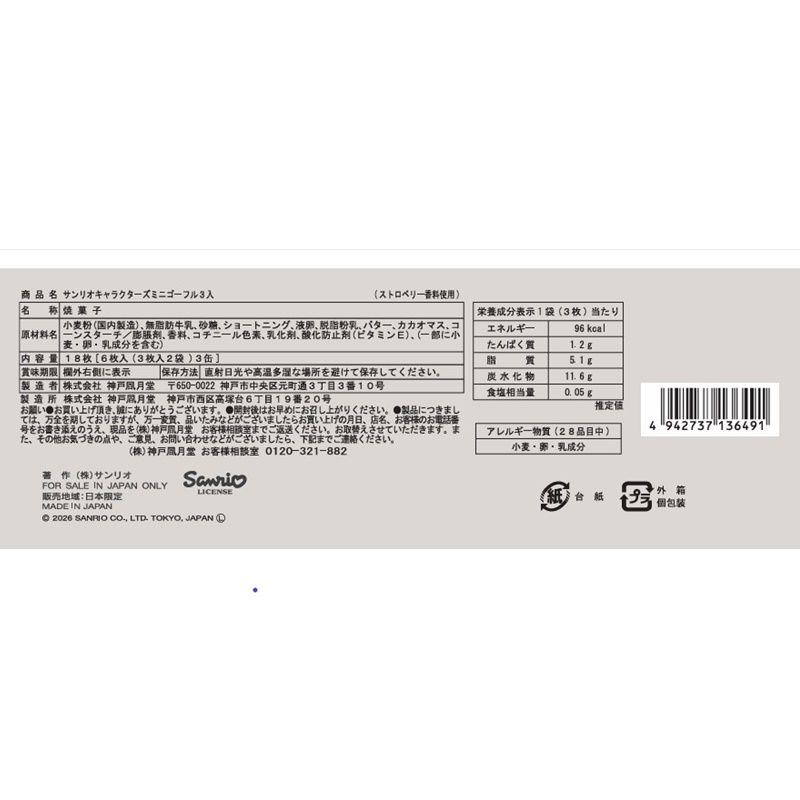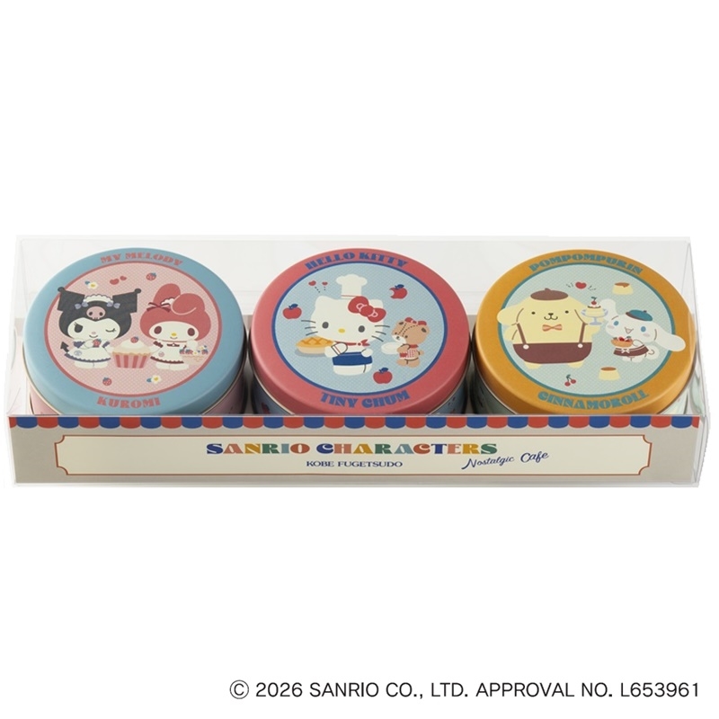 サンリオキャラクターズ3種のデザイン缶のゴーフルです。内)プティーゴーフル6枚×3缶