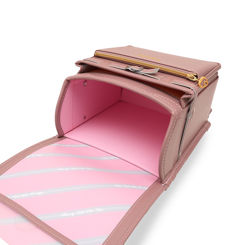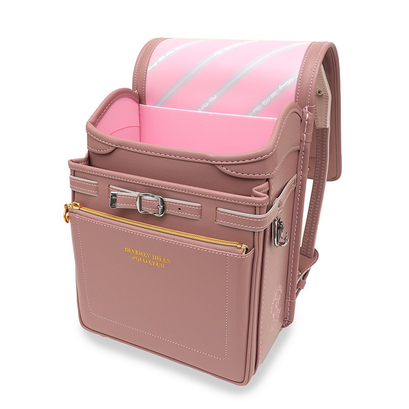パステルカラーでキュートなレジメンタルストライプで表現。ブランドロゴは金色の刺繍でエレガントな雰囲気を演出、