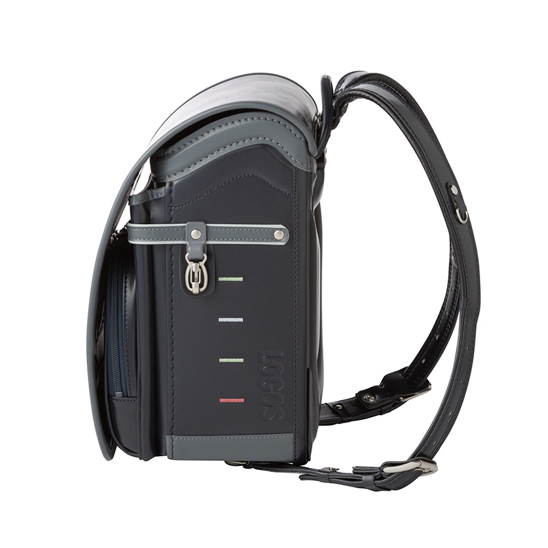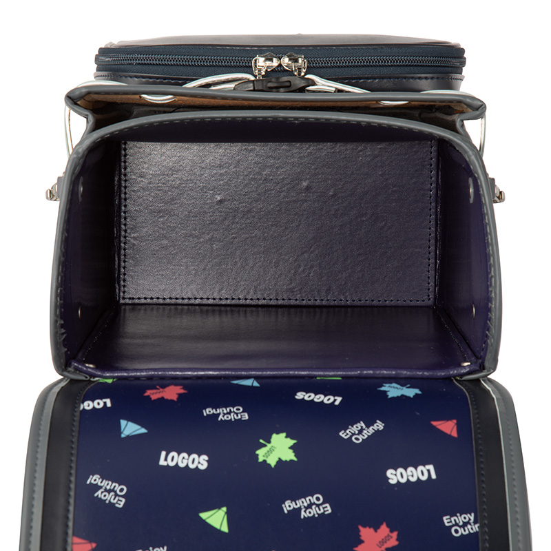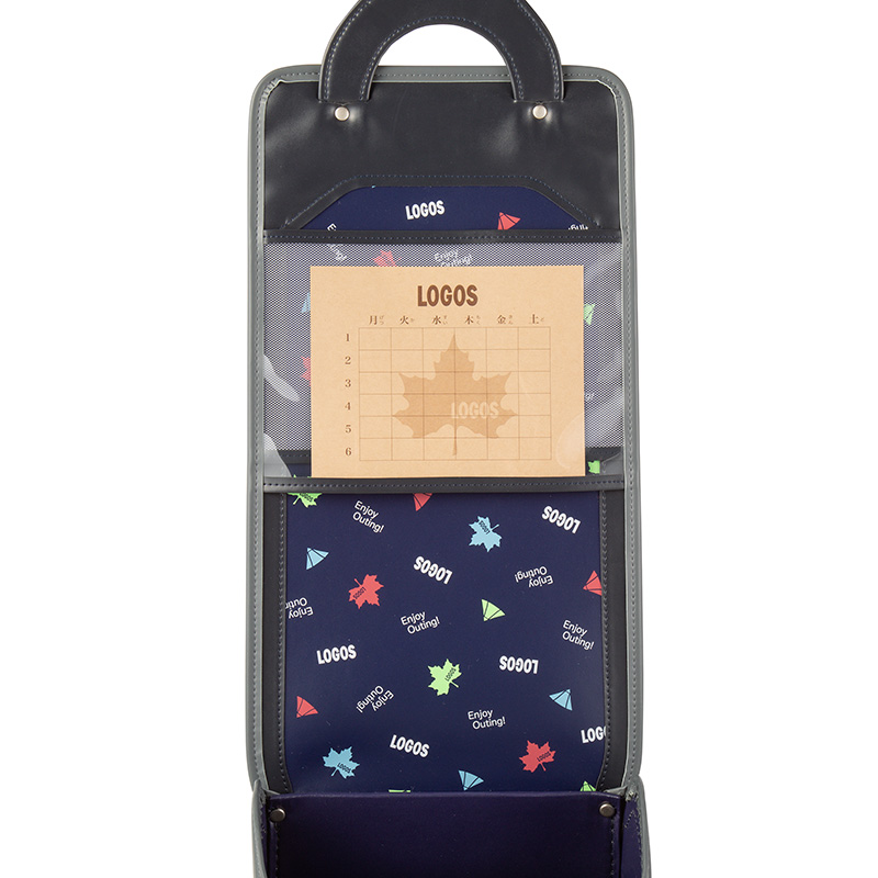 ベルト留めをバックル留めにし、ロゴスのブランドカラーであるオリジナルのグリーン色や