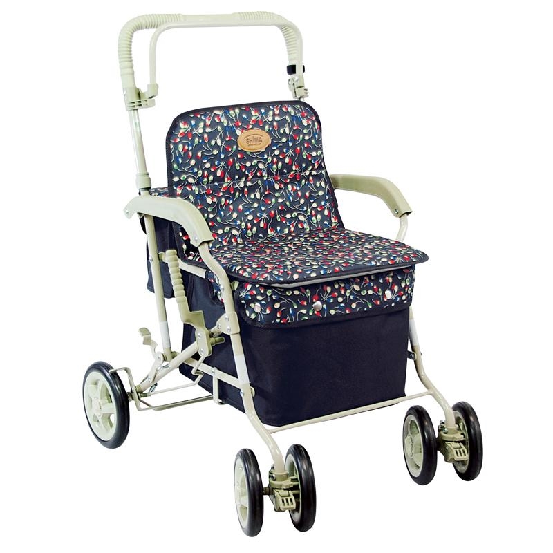 られる安心の仕様です。荷物がたくさん入り、持ち運び便利なシルバーカーです。車幅が広く安定している為、大きな段差など乗り越