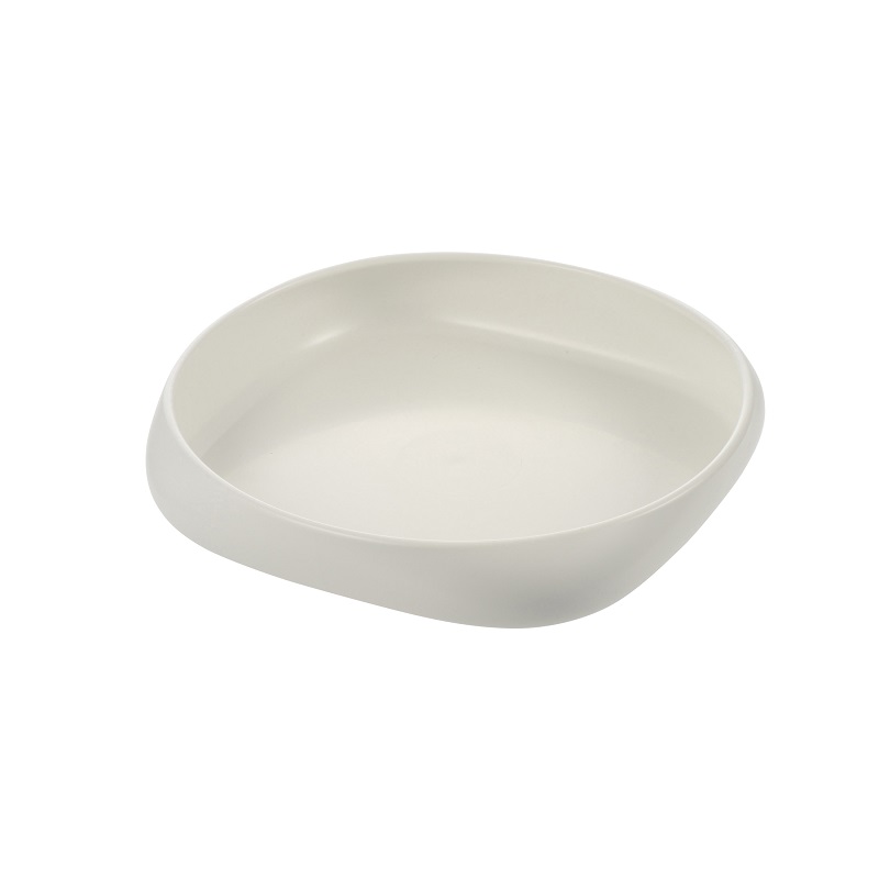 食器を置いたまますくいやすい。角に食品を集めやすい形状です。