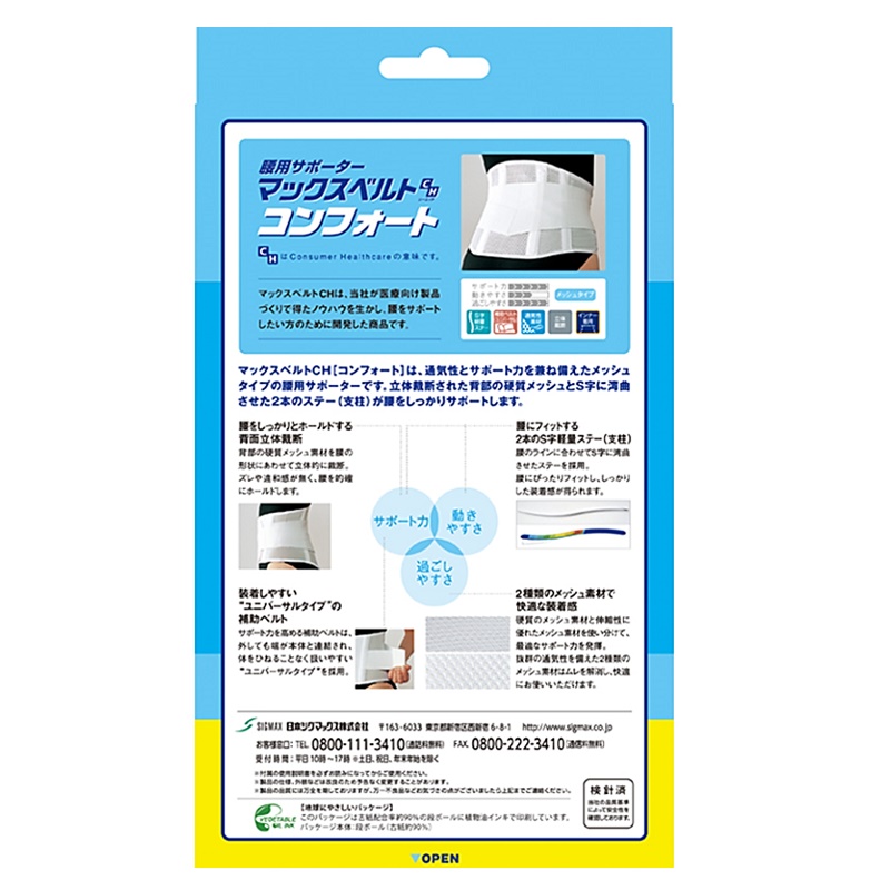 サポート力を高める補助ベルトは、外しても端が本体と連結され、体をひねることなく扱いやすい「ユニバーサルタイプ」採用。