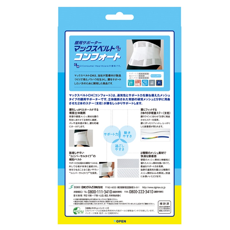 サポート力を高める補助ベルトは、外しても端が本体と連結され、体をひねることなく扱いやすい「ユニバーサルタイプ」採用。