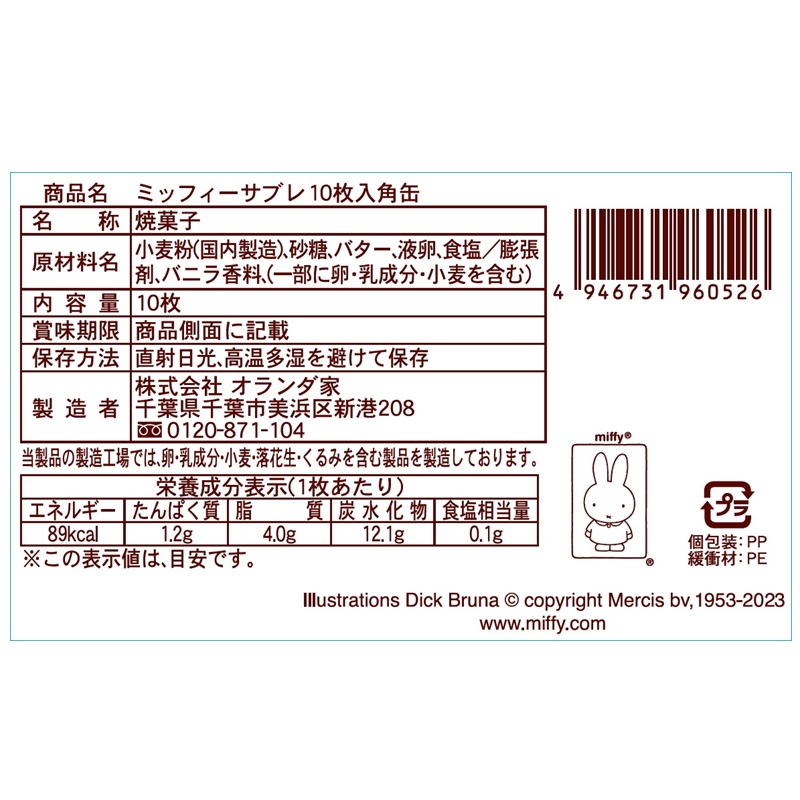 ミッフィーの缶にミッフィーサブレが10枚入ってます。