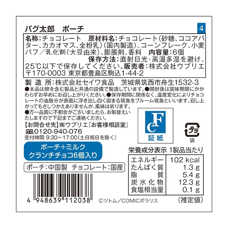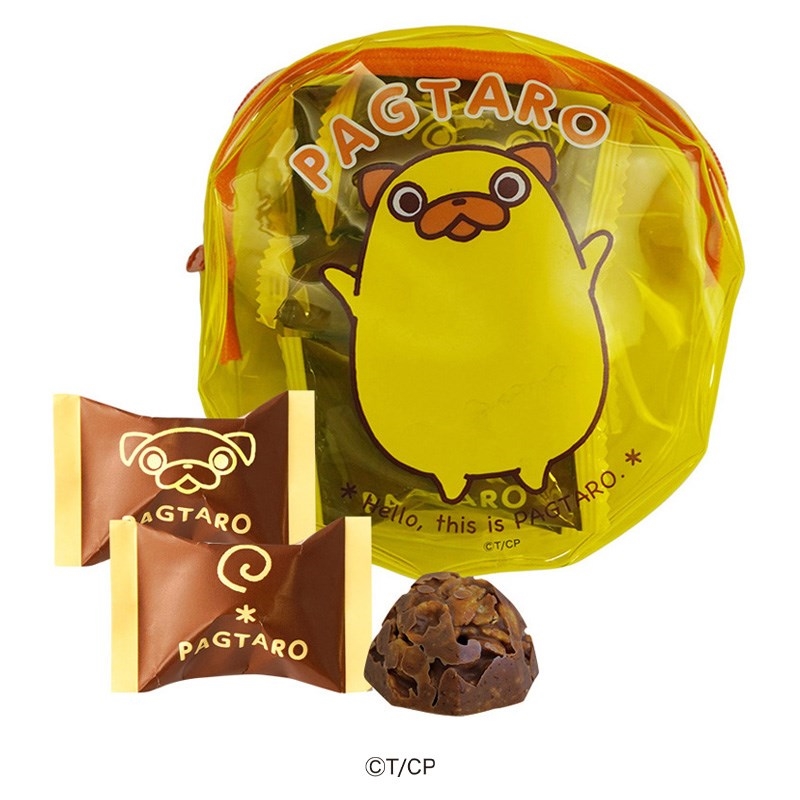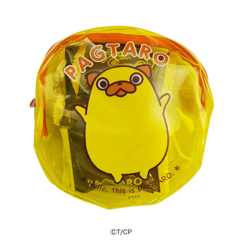 パグ太郎がデザインされたポーチにクランチチョコを詰めました。