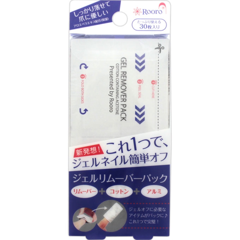 ・ジェルネイルのオフの際に必要なアイテム、コットン&リムーバー&アルミが1つになったパック!