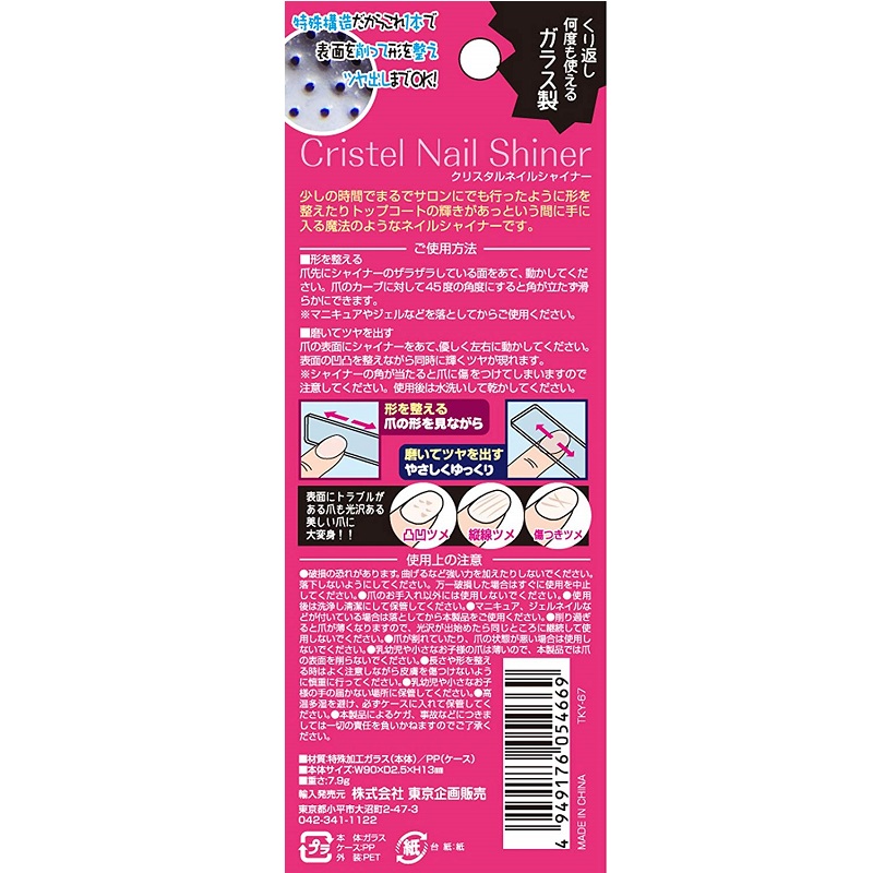 削りとツヤ出しがワンステップ。ながく使える特殊加工ガラス製のネイルシャイナーです。