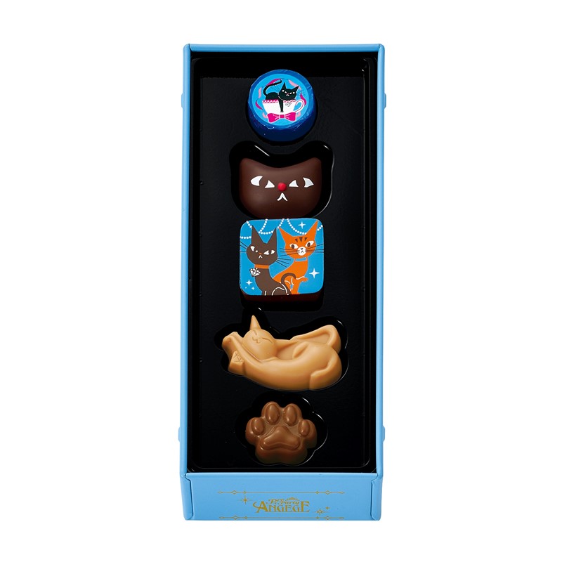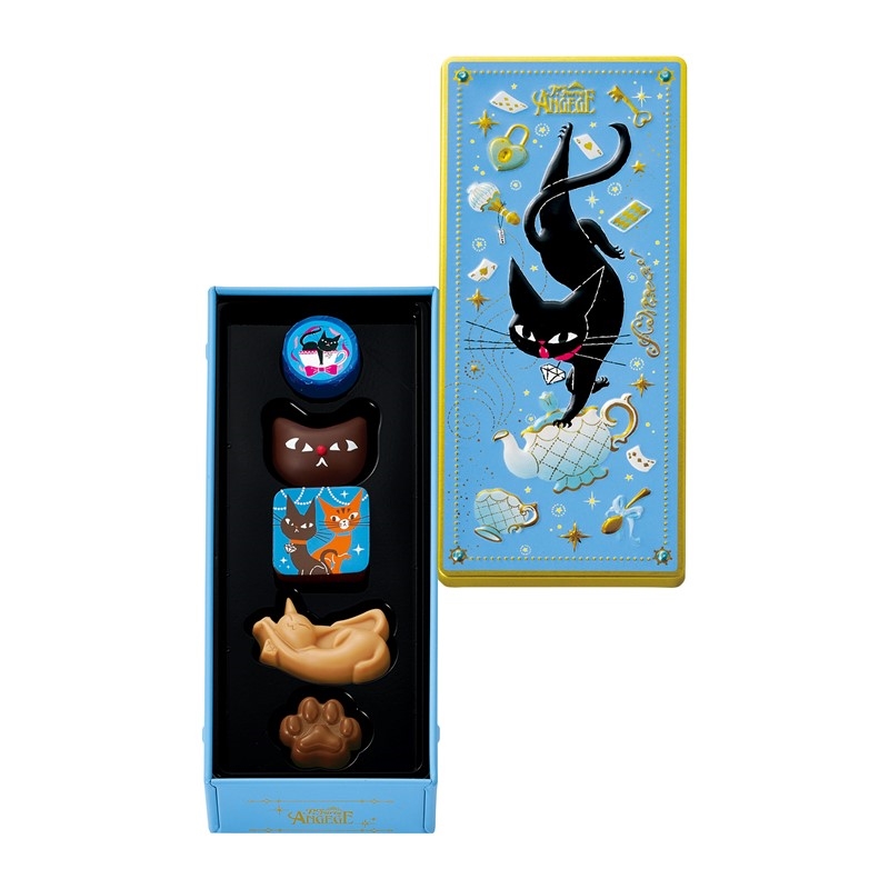 魔法のティーパーティーとアンジュジュを描いた缶に、猫型プリントチョコレートや、