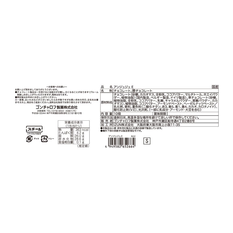※アレルギー表示およびアルコール分については、パッケージの裏面画像をご確認頂けますようお願い致します。