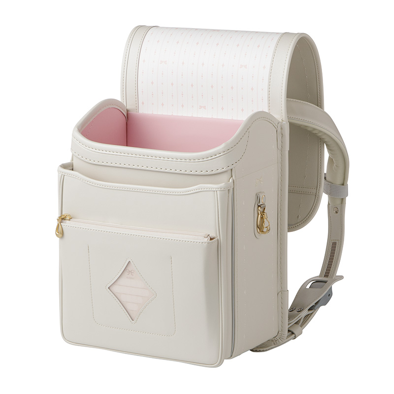 ●エアロキャッチ・・・肩ベルトが自然に立ち上がることによりランドセルが背中にぴったりフィットします。