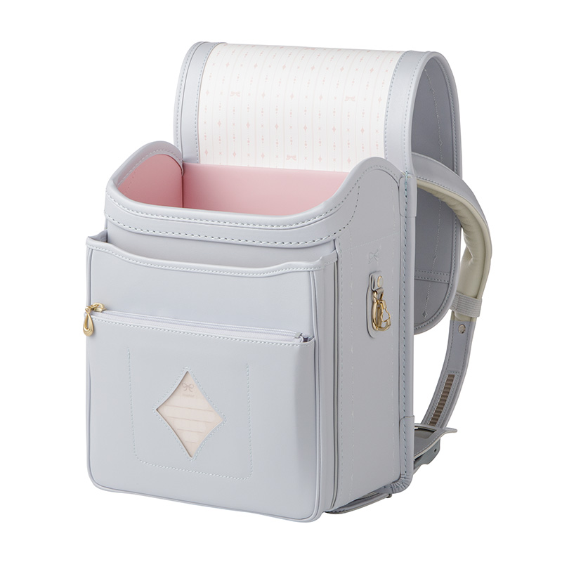 ●エアロキャッチ・・・肩ベルトが自然に立ち上がることによりランドセルが背中にぴったりフィットします。