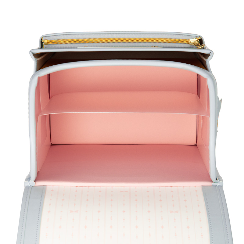 ●エアロキャッチ・・・肩ベルトが自然に立ち上がることによりランドセルが背中にぴったりフィットします。