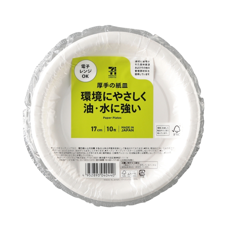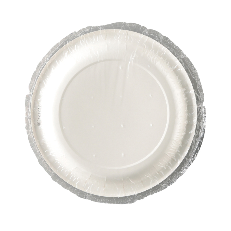 耐水と耐油のコーティング加工が施された使い捨ての紙皿。