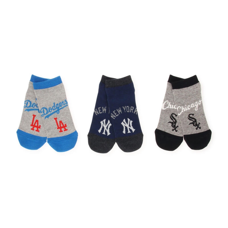メジャーリーグのチームロゴデザインの男児3足組スニーカー丈のソックスです。