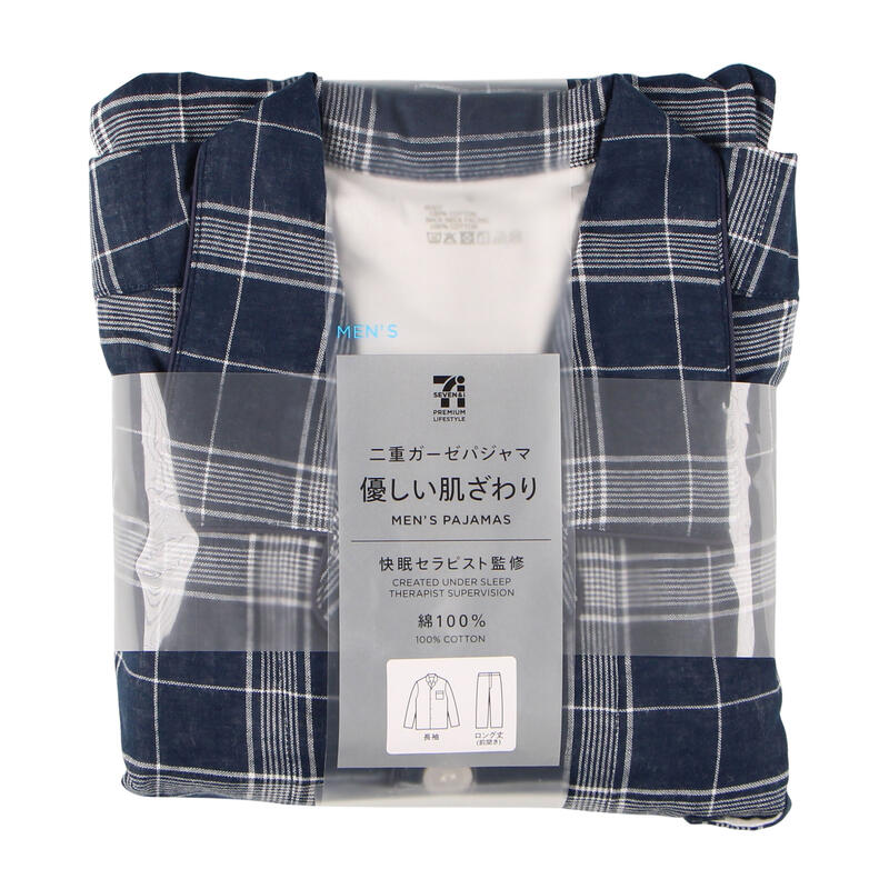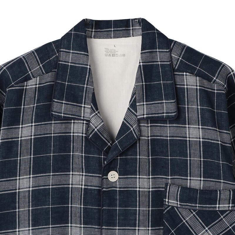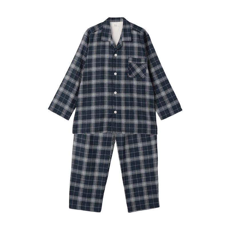 柔らかくやさしい肌ざわりのガーゼ素材を使用した格子柄パジャマ。