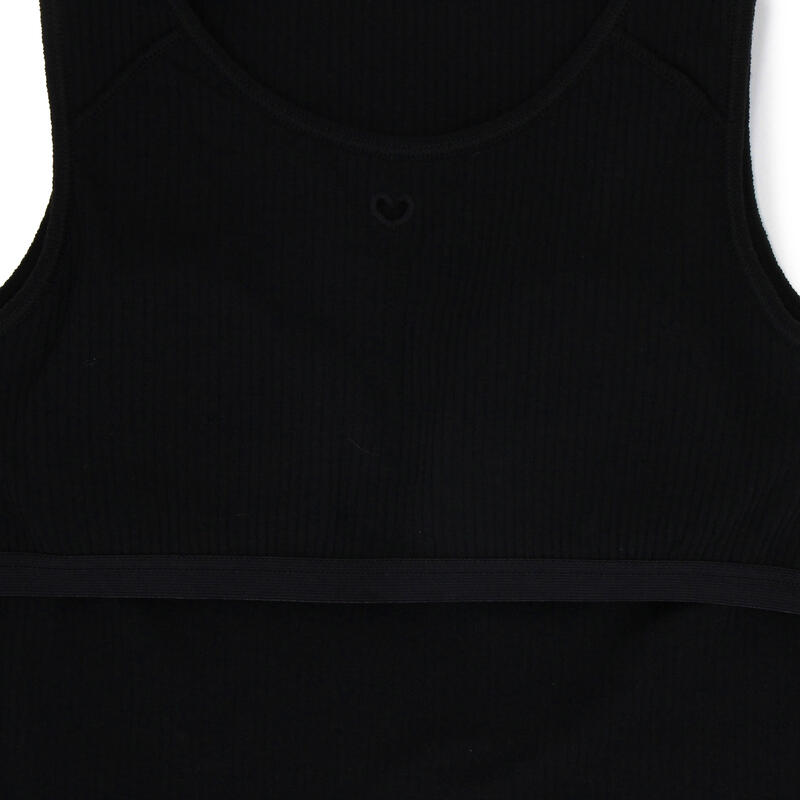 細めのリブ加工がされた生地は伸縮性があり快適な着心地。