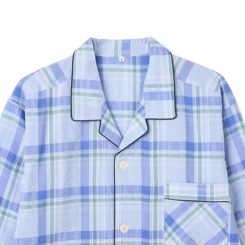 コットン100%のサッカー素材仕立てで、肌にさらっと心地よく着られます。