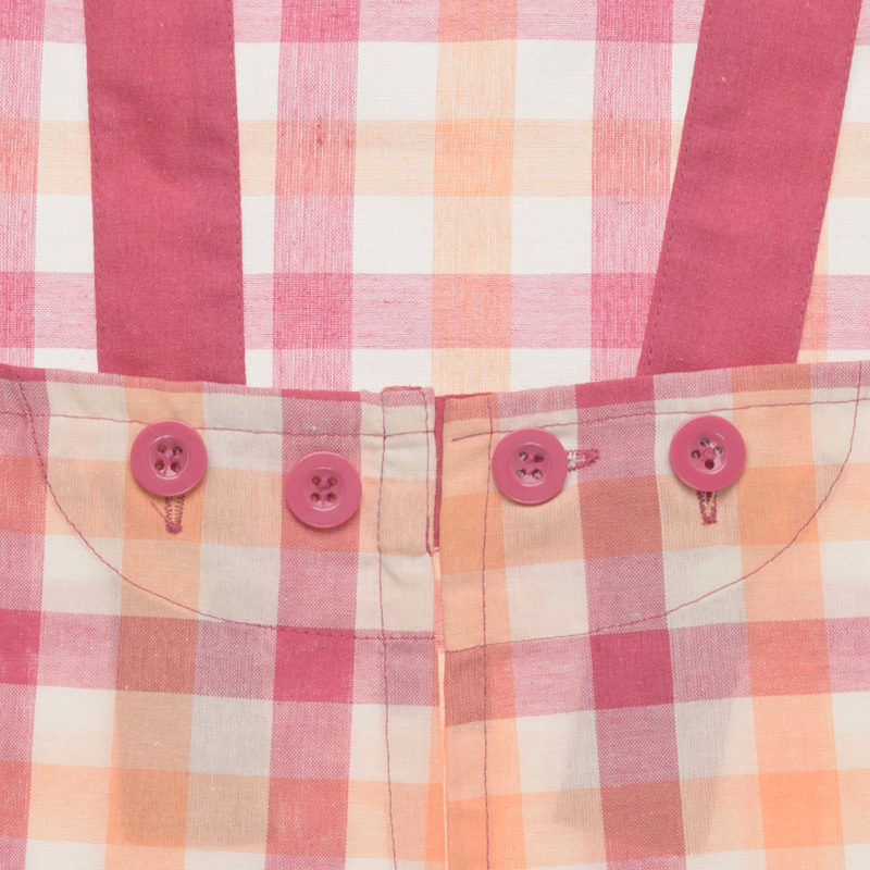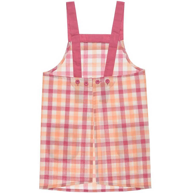 お子様の成長に合わせて後ろのボタンで着丈及び身幅のサイズ調整が出来ます。