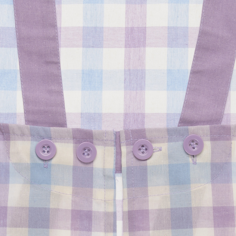お子様の成長に合わせて後ろのボタンで着丈及び身幅のサイズ調整が出来ます。