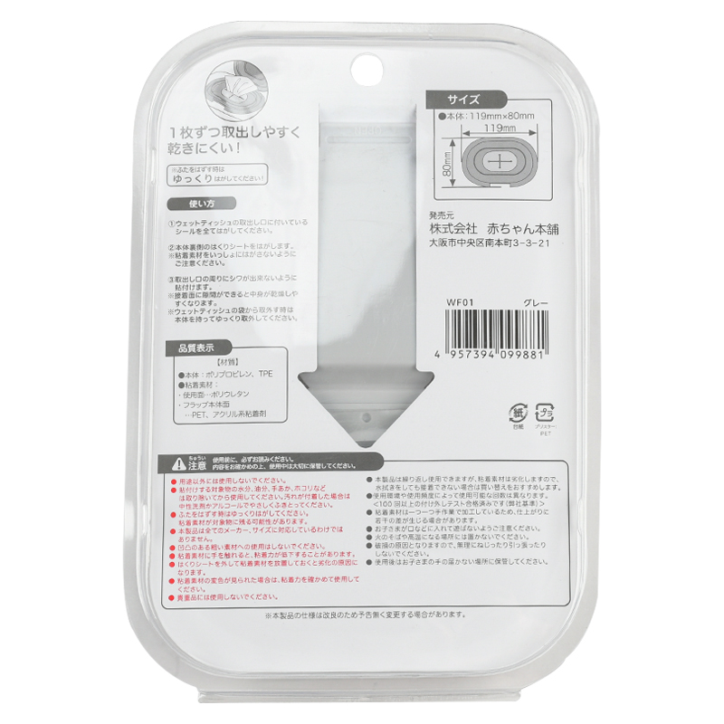 ウェットティッシュやおしりふきの中身が乾きにくい仕様です。
