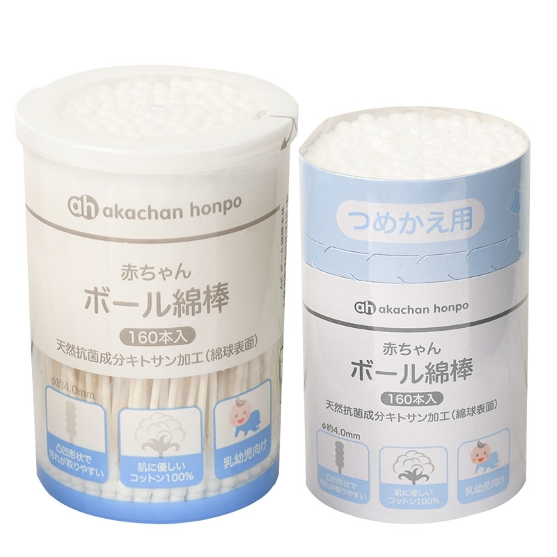 乳幼児向けです。凹凸形状で汚れが取れやすいボール綿棒。