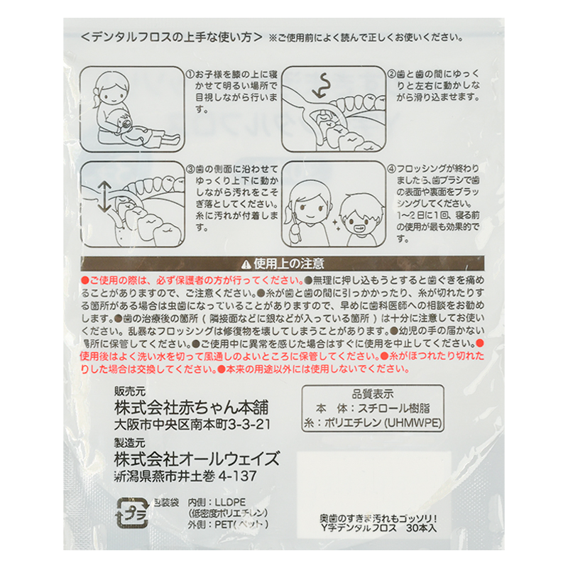 歯間に入りやすい角度と深さのY字デンタルフロスです。