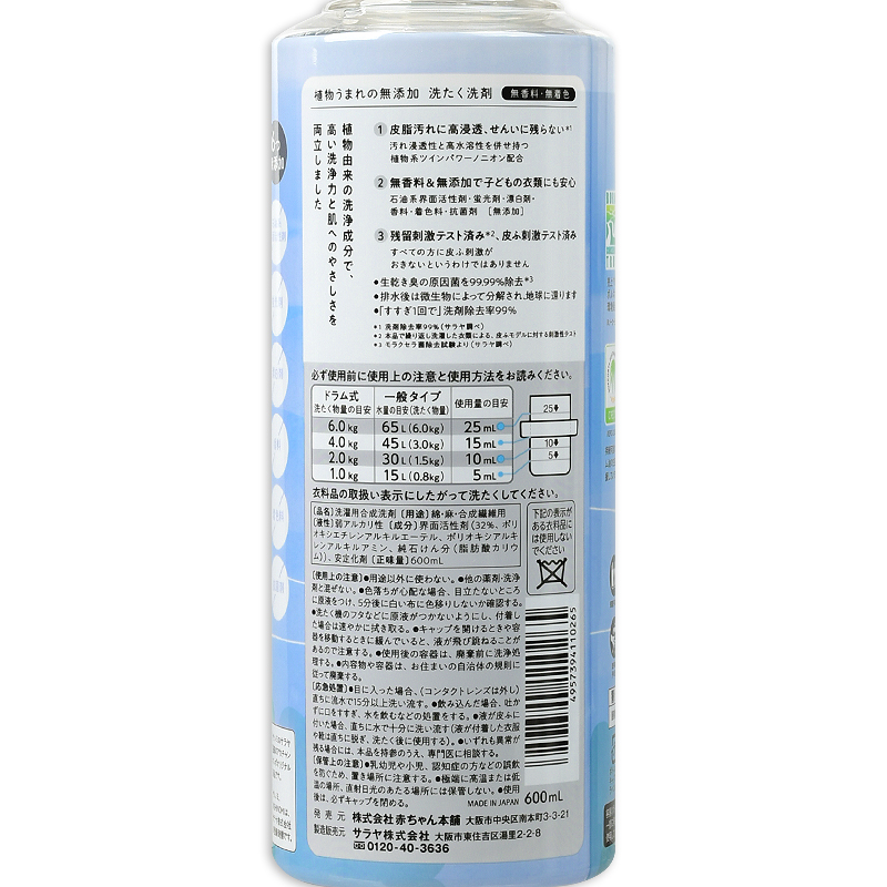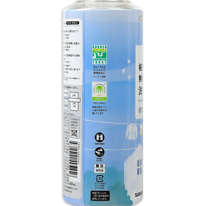 植物由来の洗浄成分で、高い洗浄力と肌へのやさしさを両立した香料を含まない洗たく洗剤。