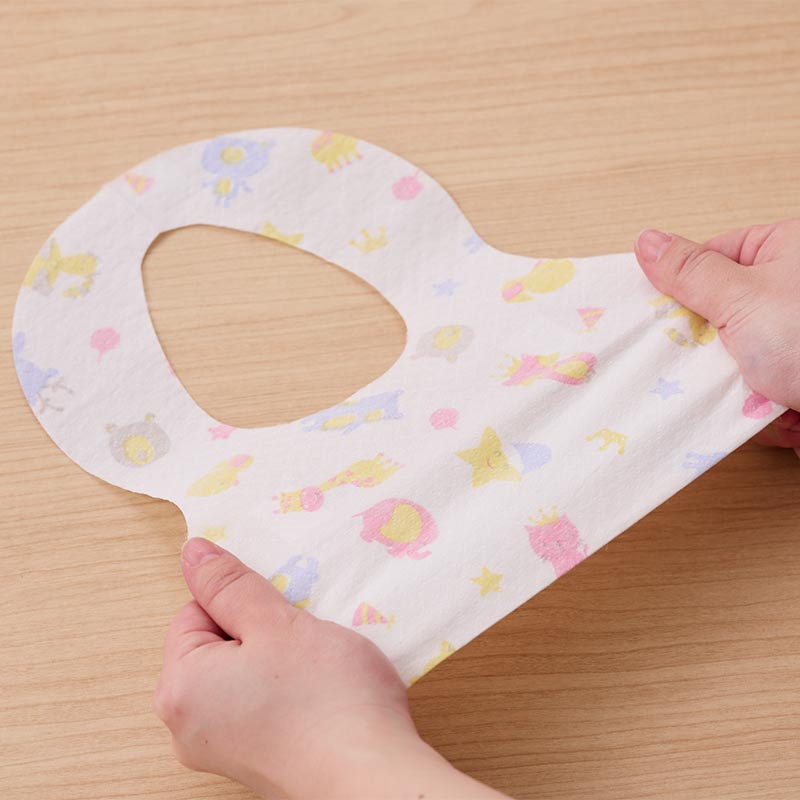 フワフワでやさしい3層式の使い切りミニエプロンです。