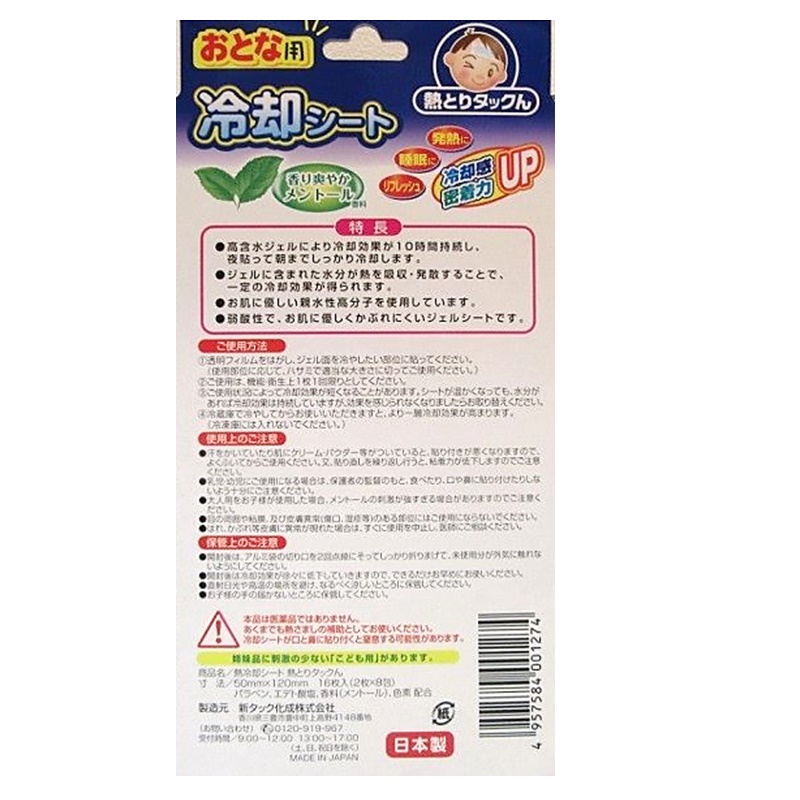 高含水ジェルにより約10時間冷却効果が持続、夜貼って朝までしっかり冷却する冷却シートです。