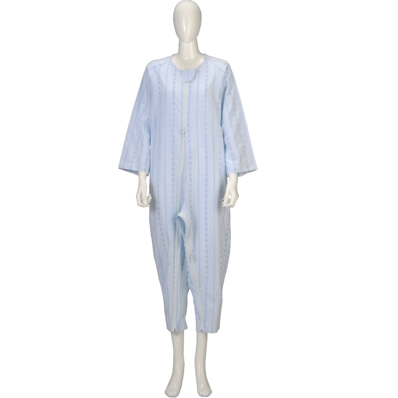 胸元から足までフルオープン式のファスナーが配置されており、着替えや清拭が楽に行えます。