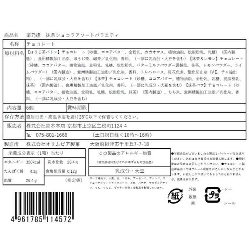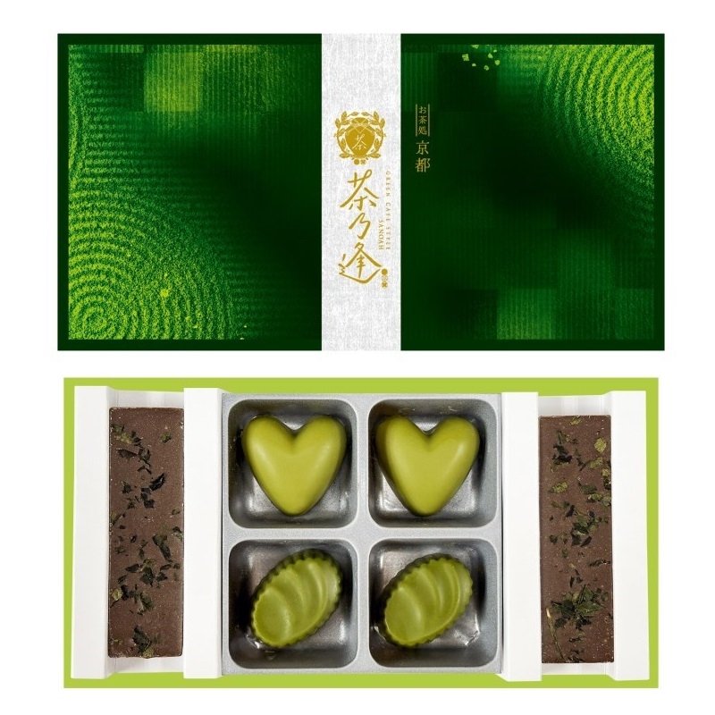 お茶を味わうバトンチョコを添えたバラエティー豊かな6つのショコラの詰合せ