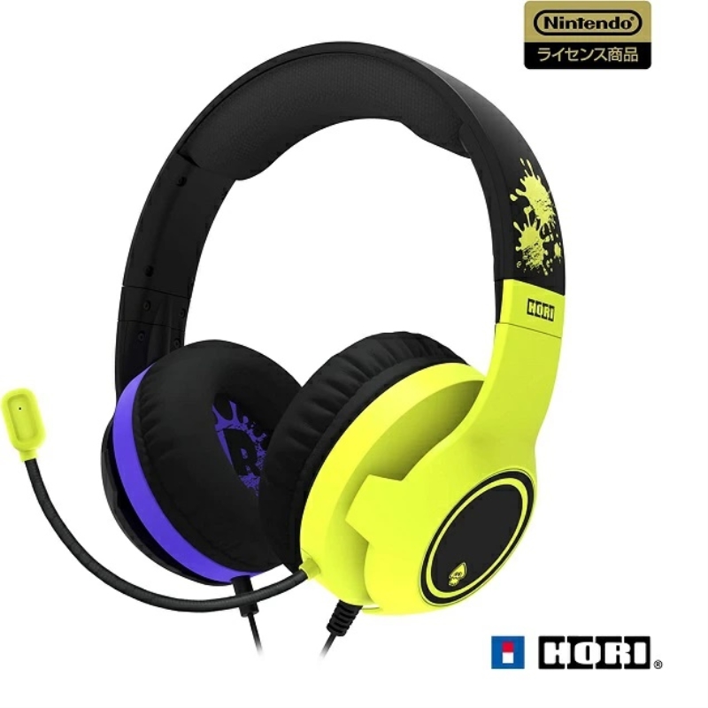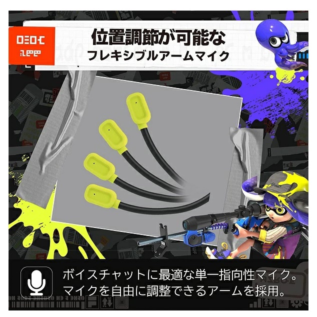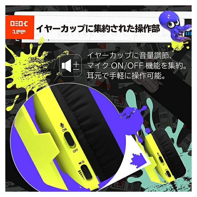 ・スプラトゥーン3のメインかラーとイカタコのポップなデザインのヘッドセットとなっております。