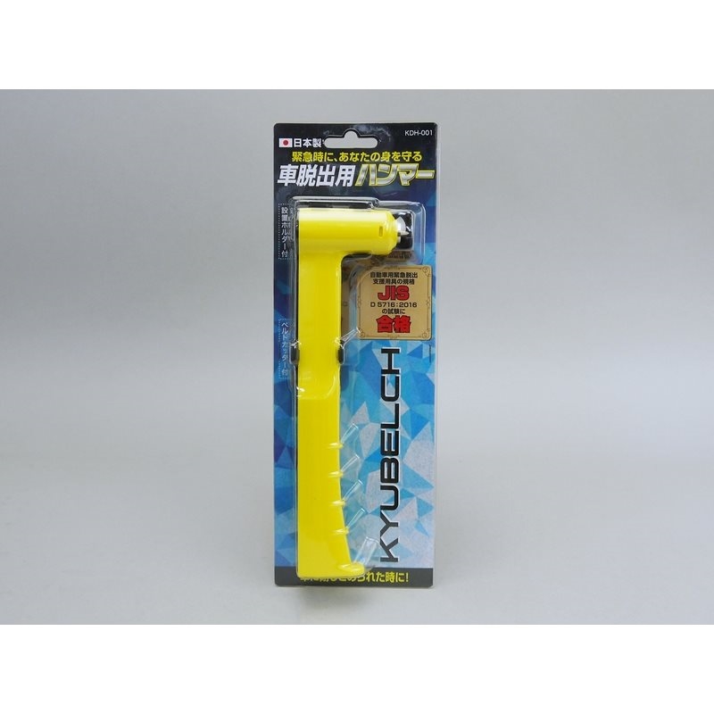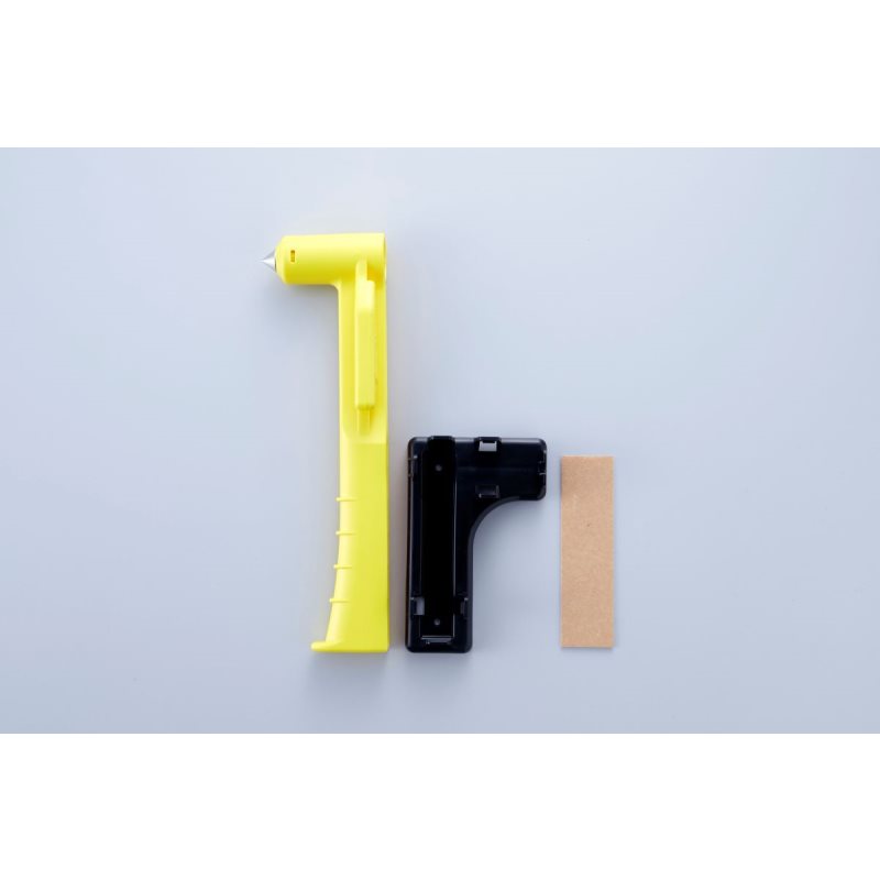 緊急時の脱出用ハンマー。カッターが付いており、シートベルトの切断も可能。軽量で持ちやすく女性でも安心。