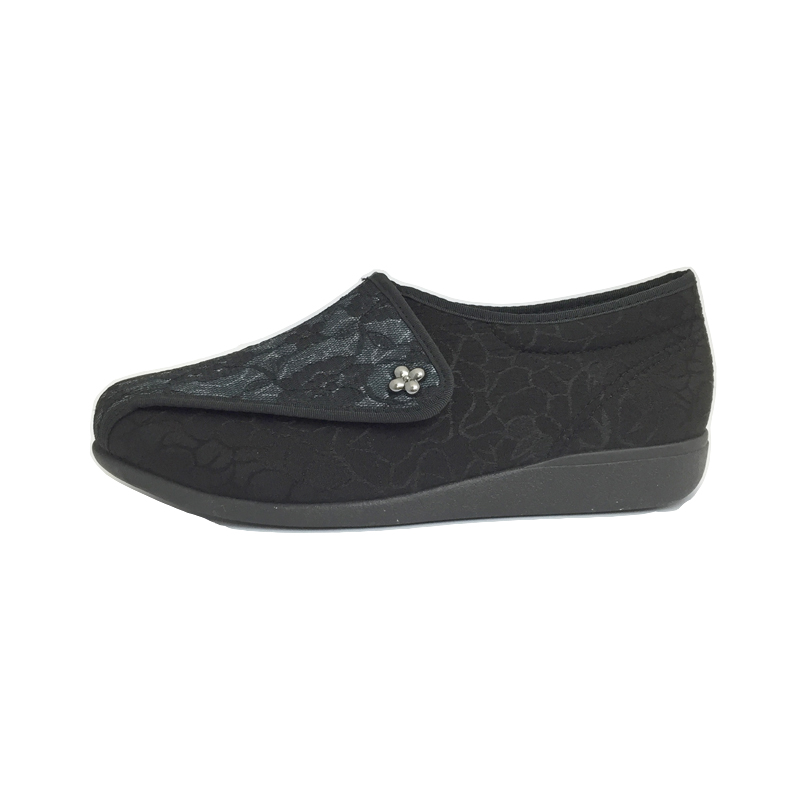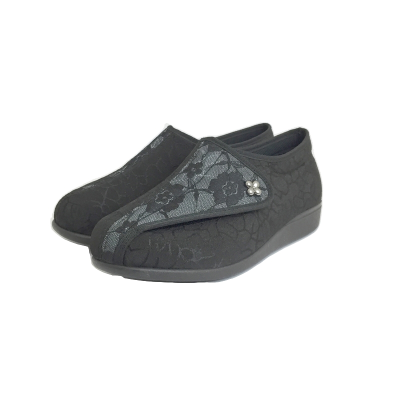 快歩主義婦人レース柄素材脱ぎ履きラクラクシューズ3E型番:L011外出用