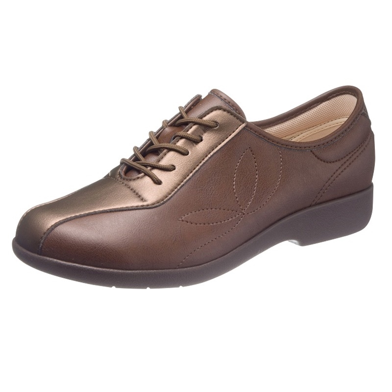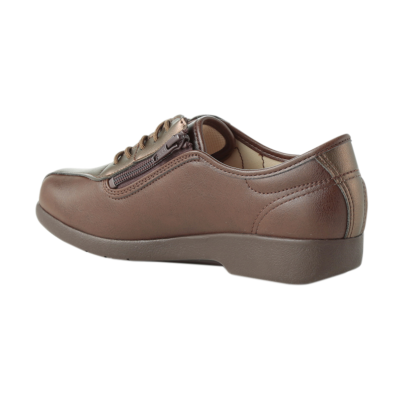 婦人「快歩主義」合皮素材デイリー仕様紐ファスナーシューズ3EKHSL135外出向け