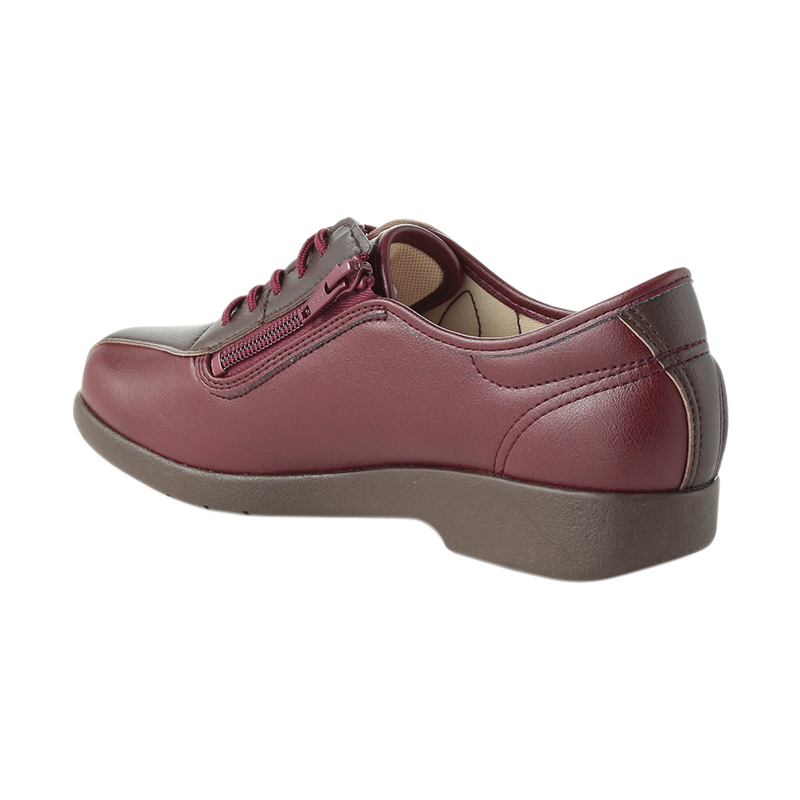 婦人「快歩主義」合皮素材デイリー仕様紐ファスナーシューズ3EKHSL135外出向け