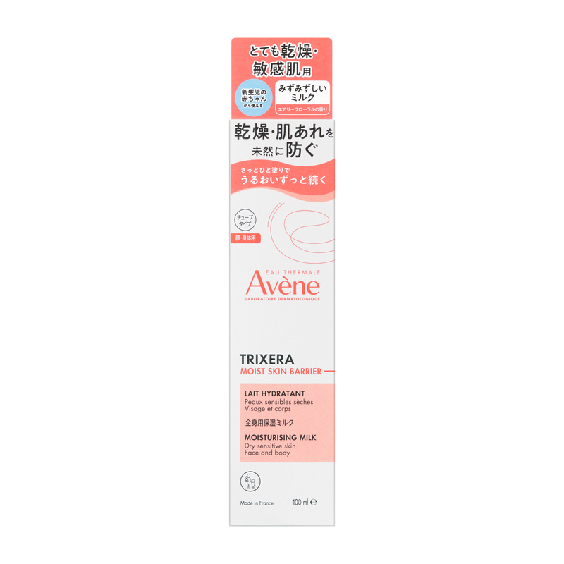 生まれてすぐの赤ちゃんから大人まで使えるみずみずしい保湿ミルク。アベンヌ温泉水*配合で、うるおいを与え、