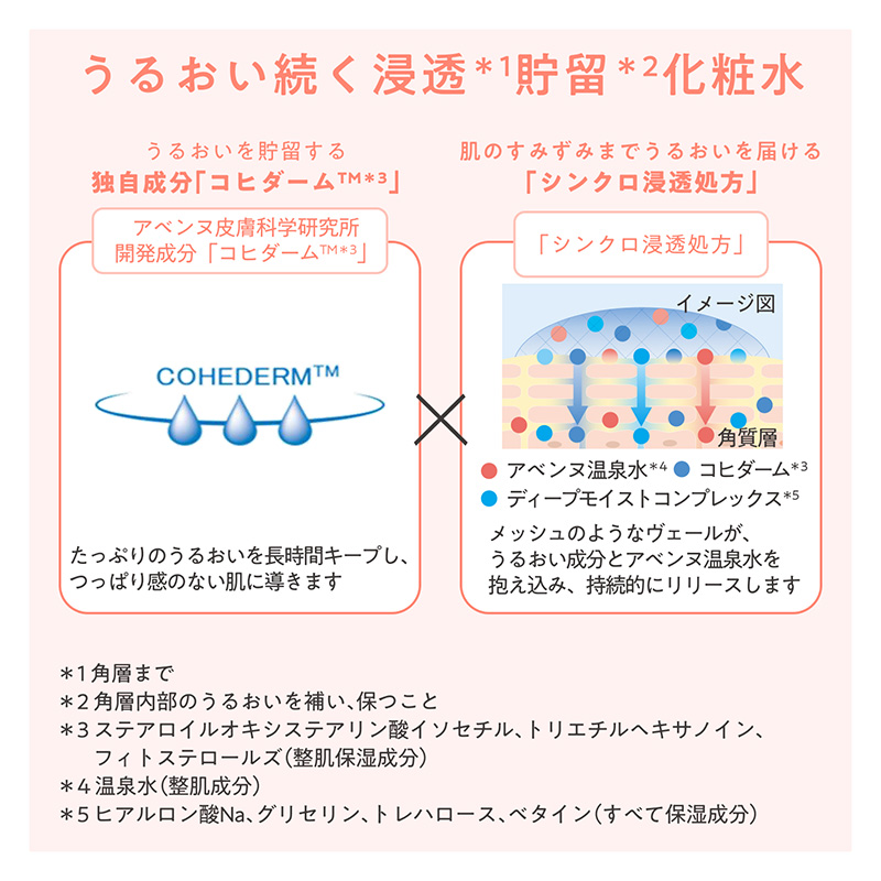 肌にうるおいをたっぷり届け、貯留*。 皮膚科学研究から生まれたなめらか浸透**化粧水。
