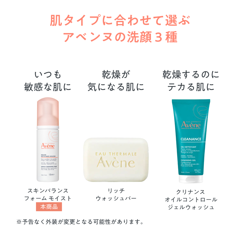 敏感な肌をアベンヌ温泉水*で洗う、うるおいつづくエアリー泡洗浄。
