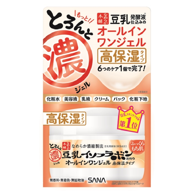 豆乳イソフラボン含有のオールインワンジェル、高保湿タイプ。